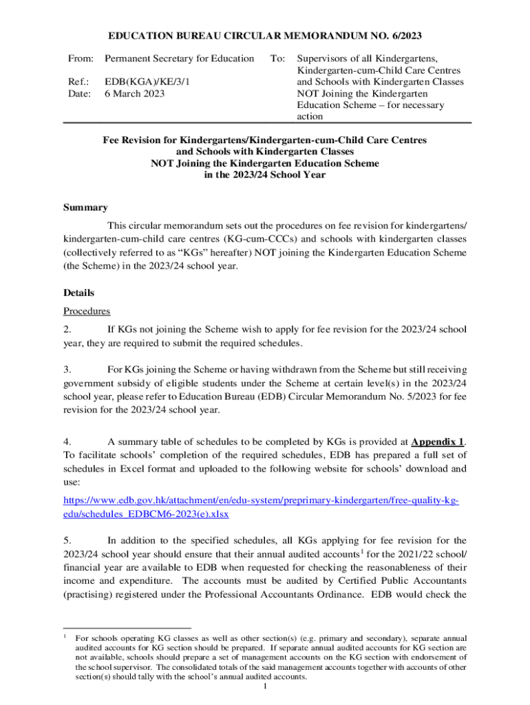 EDUCATION BUREAU CIRCULAR MEMORANDUM NO. 6/2023
