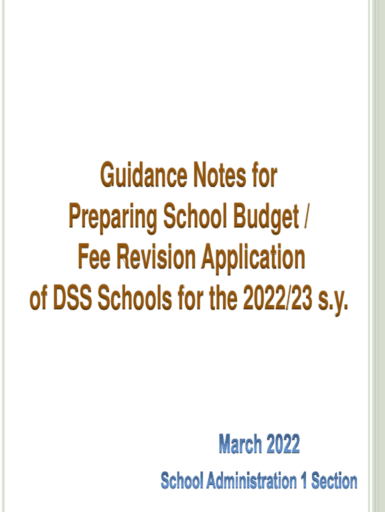 Guidance Notes for Preparing School Budget / Fee Revision Application of DSS Schools for the 2022/23 s.y. Call letter (with Excel file template) issued through CDS on 8 March 2022 Deadline for submission