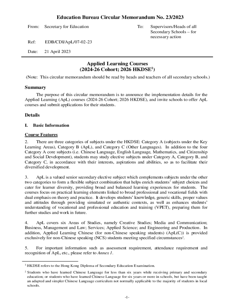 Education Bureau Circular Memorandum No. 23/2023