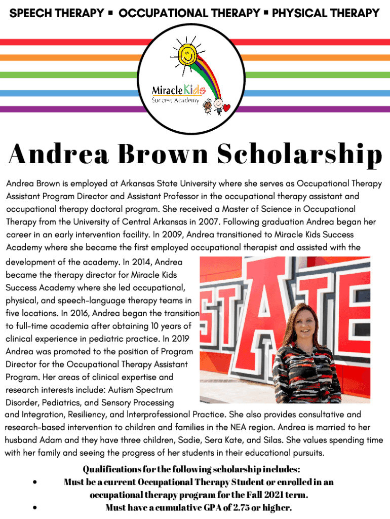 SPEECH THERAPYOCCUPATIONAL THERAPY PHYSICAL THERAPY Andrea Brown Scholarship