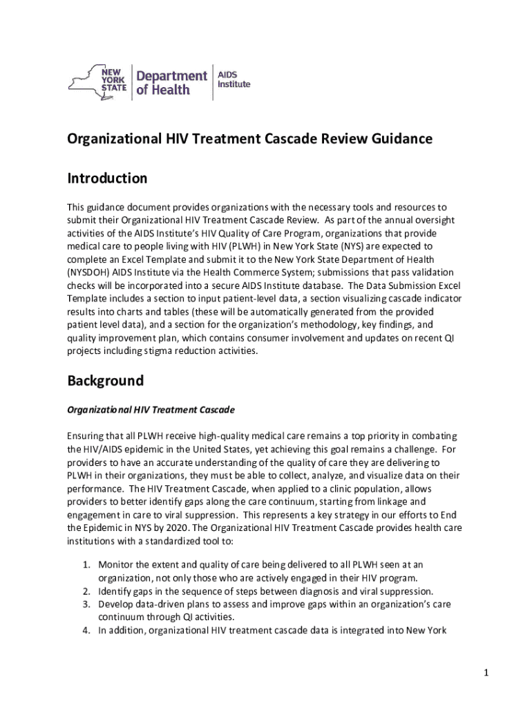 Organizational HIV Treatment Cascade Review Guidance Introduction This guidance document provides organizations with the necessary tools and resources to submit their Organizational HIV Treatment