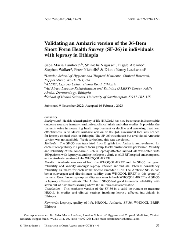 Get the free Validating an Amharic version of the 36-Item Short Form ...
