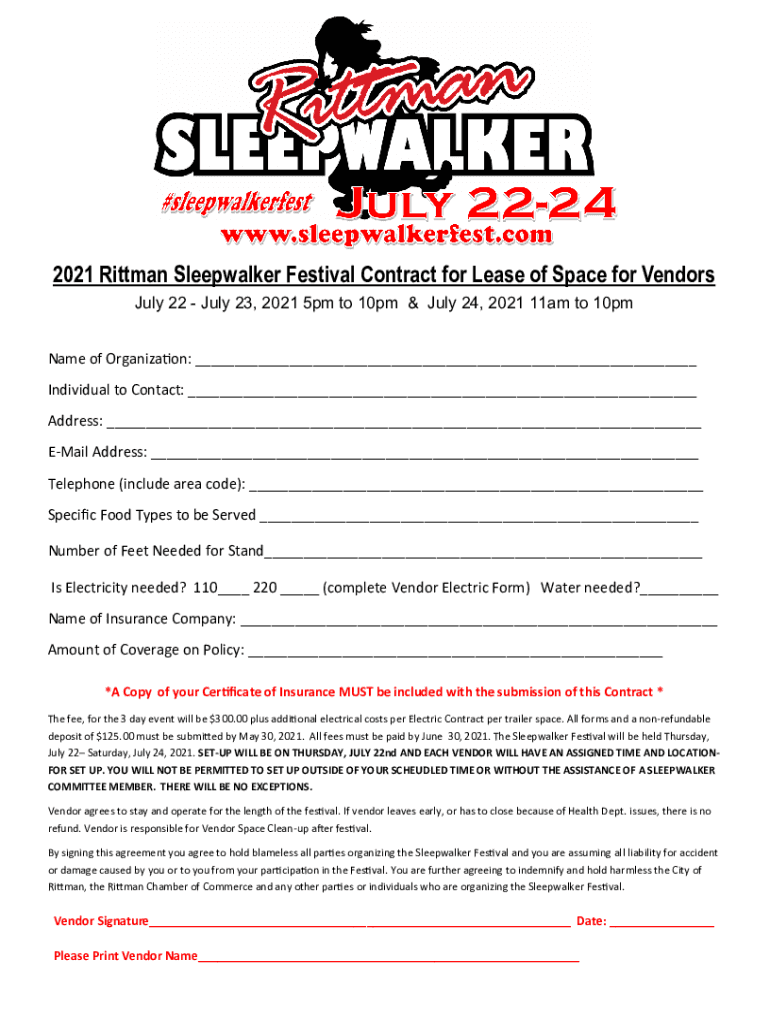 Get the free 2021 Rittman Sleepwalker Festival Contract for Lease of ...