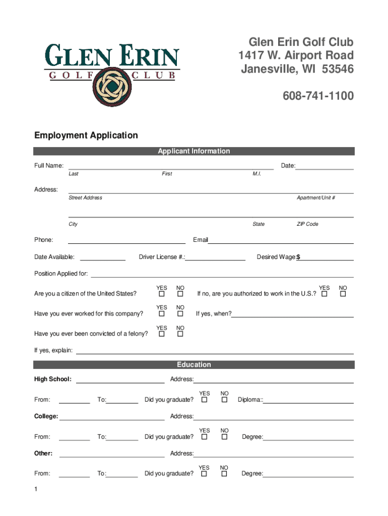 How to fill out glen erin golf club