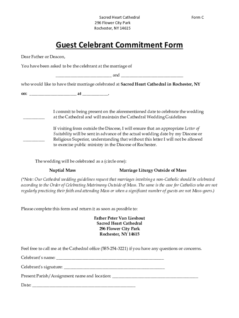 Get the free Guest Celebrant Commitment Form - Sacred Heart Cathedral