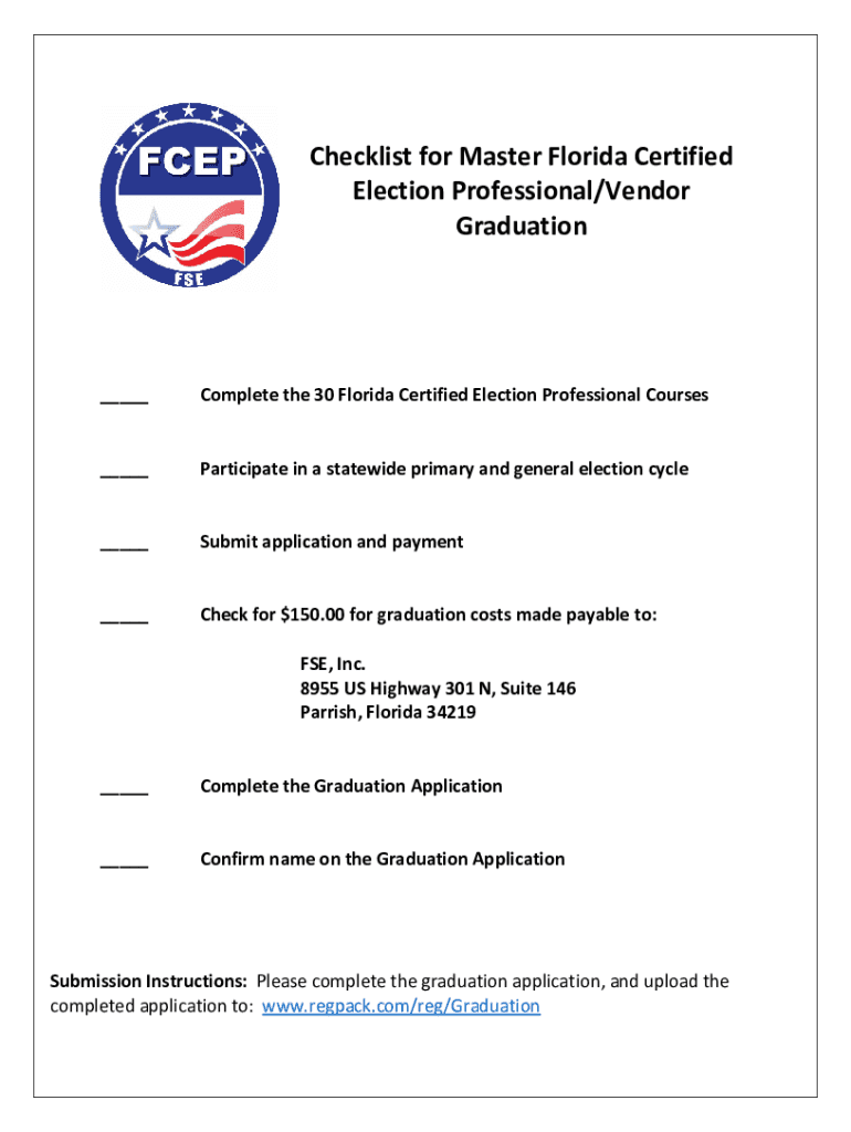 Checklist for Master Florida Certified Election Professional/Vendor Graduation___Complete the 30 Florida Certified Election Professional Courses___Participate in a statewide primary and general election