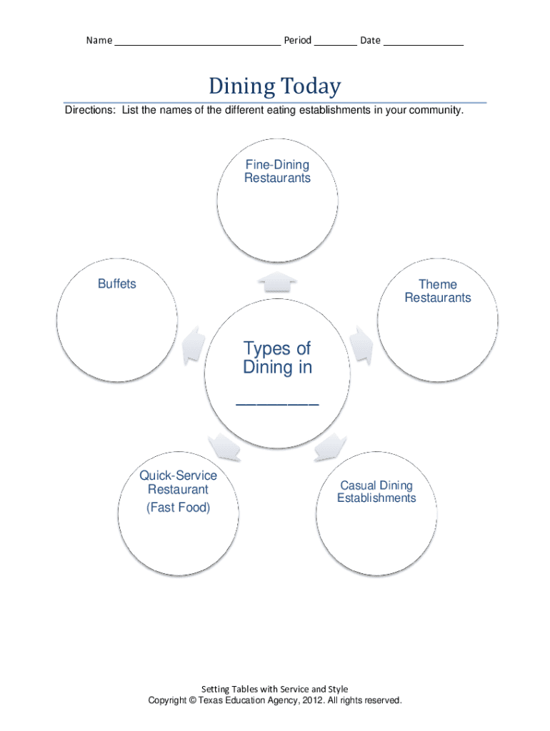 Get the free Graphic Organizer - Dining Today. Hospitality and Tourism