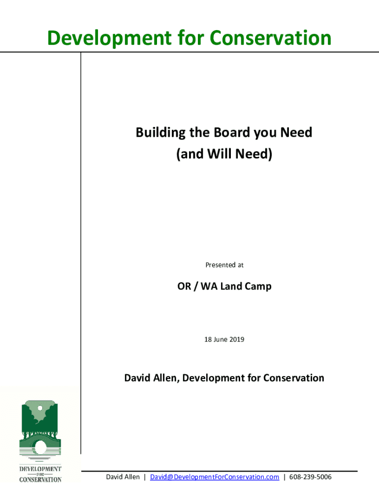 (and Will Need)Presented actor / WA Land Camp18 June 2019David Allen, Development for Conservation David Allen | David@DevelopmentForConservation.com