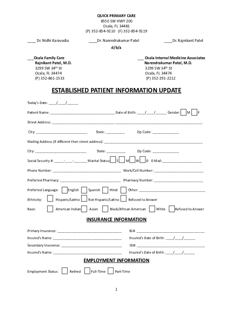 Patients who are new to the practice and need to provide their medical information.