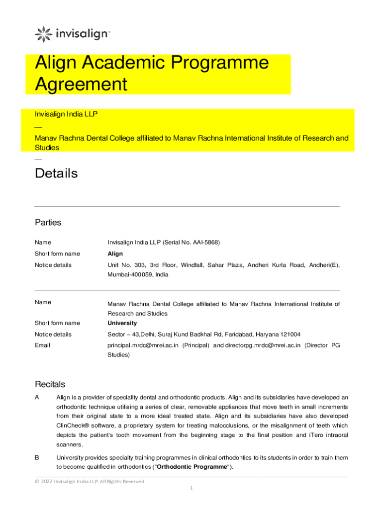 Academic institutions and industry partners involved in the collaboration are required to file align academic programme agreement.