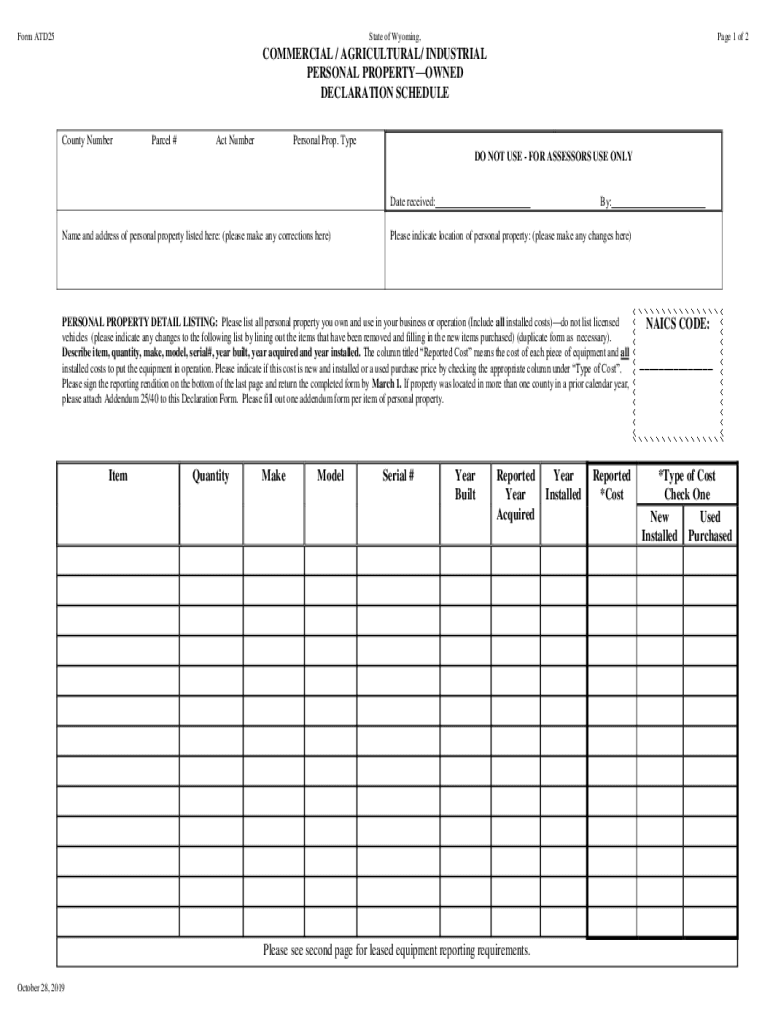 Form ATD25State of Wyoming, Page 1 of 2COMMERCIAL / AGRICULTURAL/ INDUSTRIAL