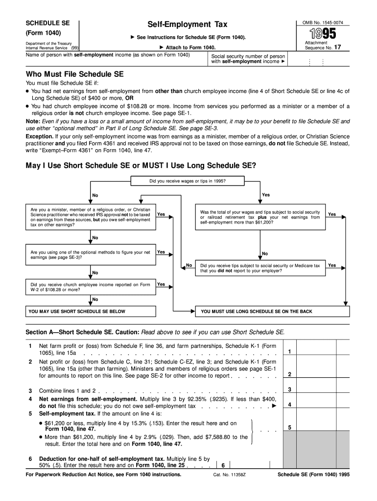 SCHEDULE SE Self-Employment Tax (Form 1040) ? OMB No. 1545-0074 See Instructions for Schedule SE (Form 1040). Department of the Treasury Internal Revenue Service (99) Attachment Sequence No. ? Attach