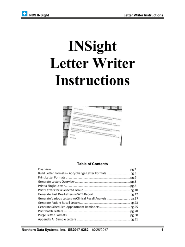 NDS INSightLetter Writer InstructionsINSight Letter Writer InstructionsTable of Contents Overview............................................................................................... pg.2
