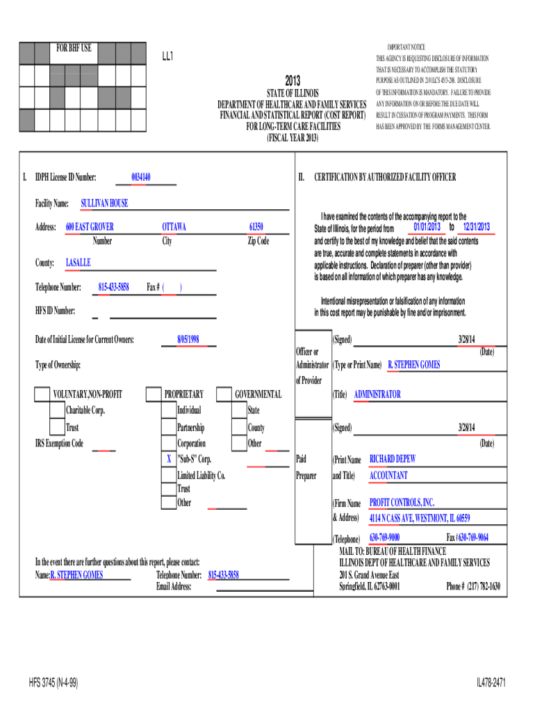 FINANCIAL AND STATISTICAL REPORT (COST REPORT)