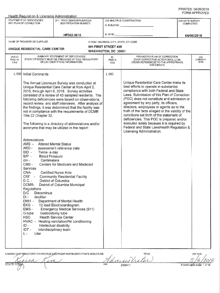 FORM APPROVEDHealth Regulation & Licensing Administration