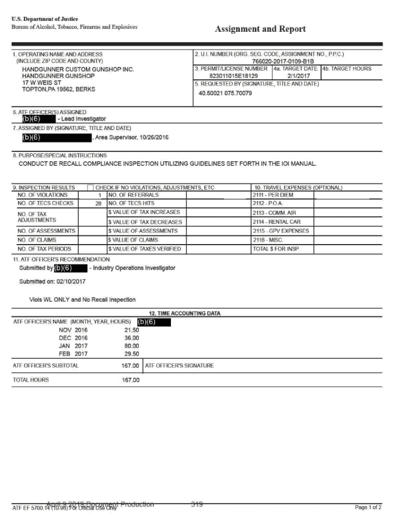 Bureau of Alcohol, Tobacco. Firearms and ExplosivesAssignment and Report