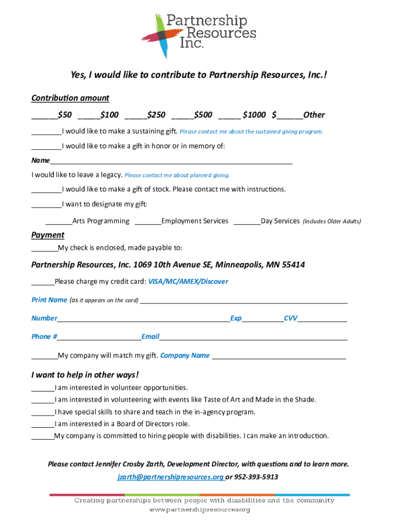 Get the free Yes, I would like to contribute to Partnership ...