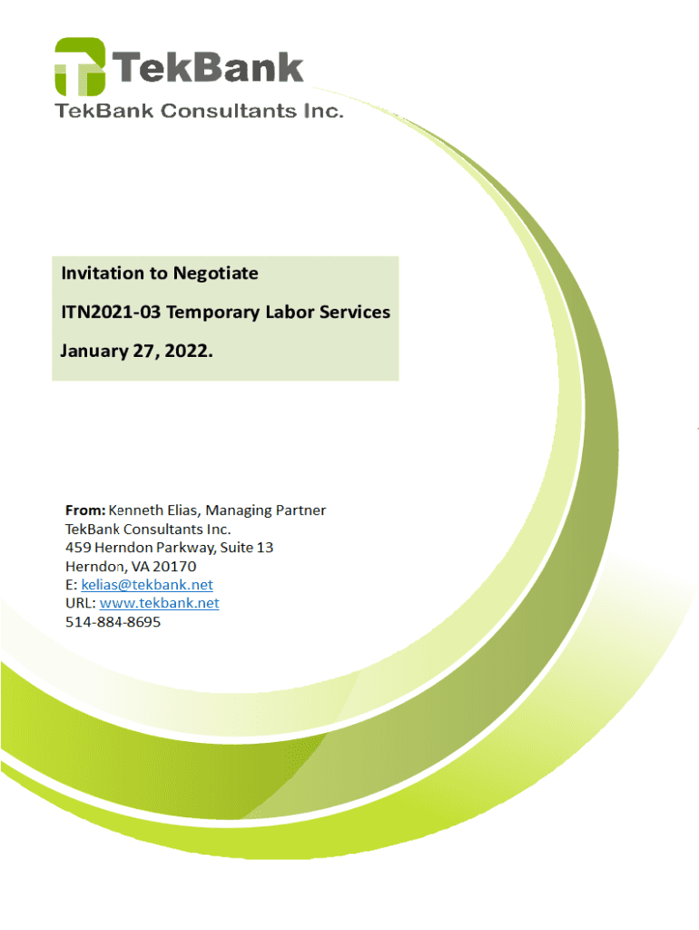 Invitation to Negotiate ITN202103 Temporary Labor Services January 27, 2022.www.tekbank.netInvitation to Negotiate ITN202103 Temporary Labor Services January 27, 2022.TABLE OF CONTINENTALIST OF FIGURES