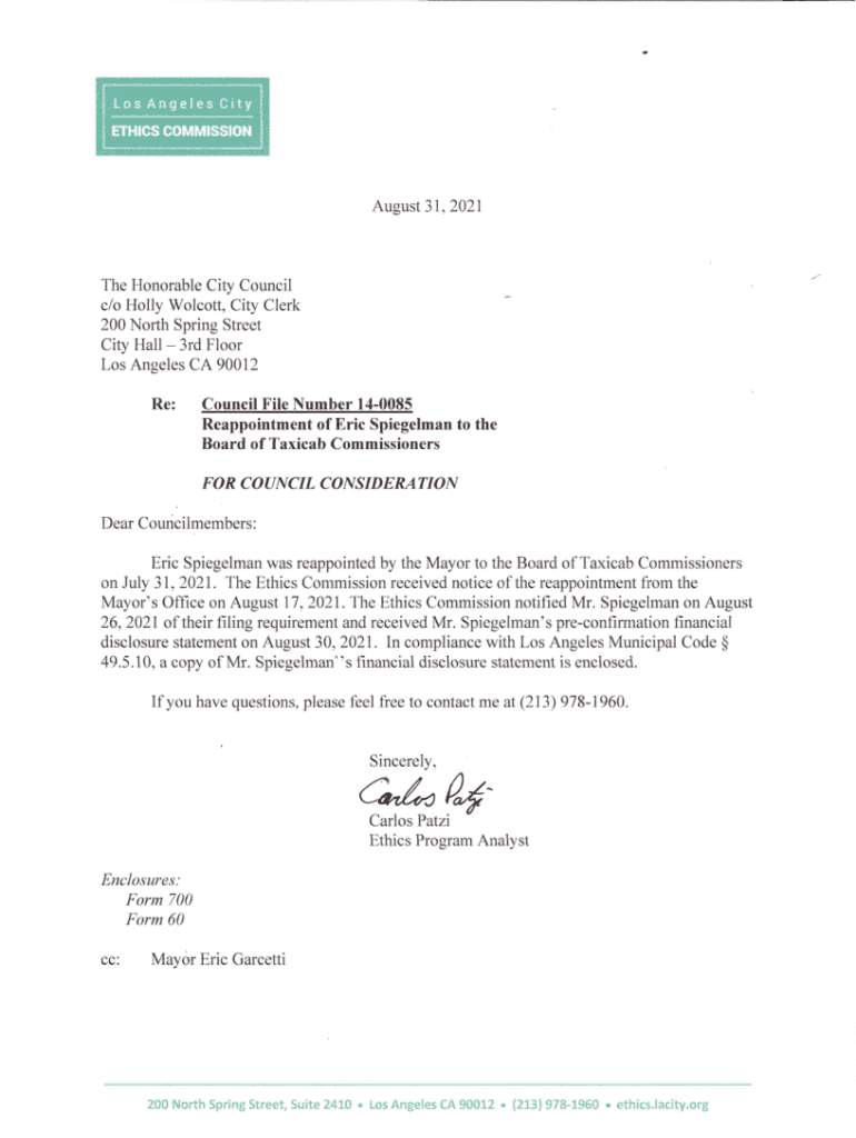 Los Angeles Bioethics COMMISSION August 31, 2021The Honorable City Council