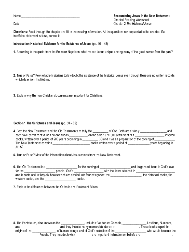 Get the free NT worksheet ch. 4.pdf - Name Date Encountering Jesus in...