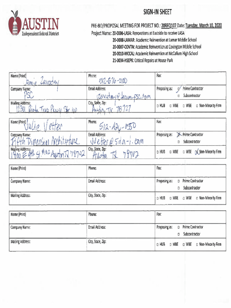 How to fill out pre-bid sign-in sheet 20rfq107