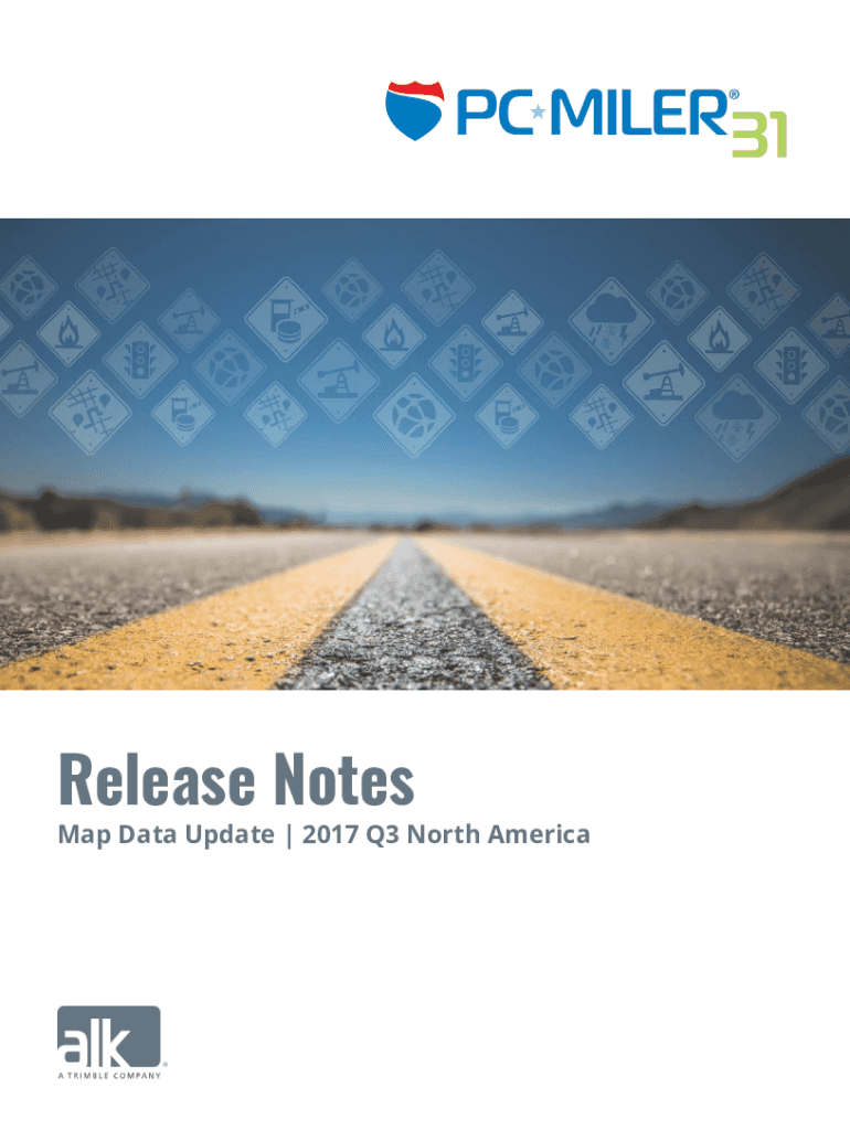 Document provides comprehensive information regarding the 2017 Q3 North America Map Data Update for PC*MILER, including installation instructions, updates, and coverage statistics across various regions.