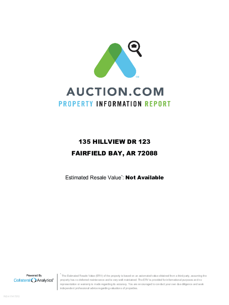 135 HILLVIEW DR 123 FAIRFIELD BAY, AR 72088Estimated Resale Value*: Not Available×The Estimated Resale Value (ERV) of the property is based on an automated value obtained from a third party, assuming