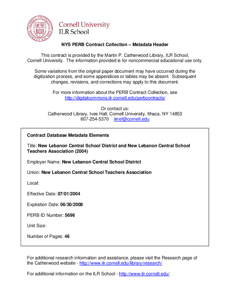 NYS PER Contract Collection Metadata Header This contract is provided by the Martin P. Cather wood Library, ILL School, Cornell University. The information provided is for noncommercial educational