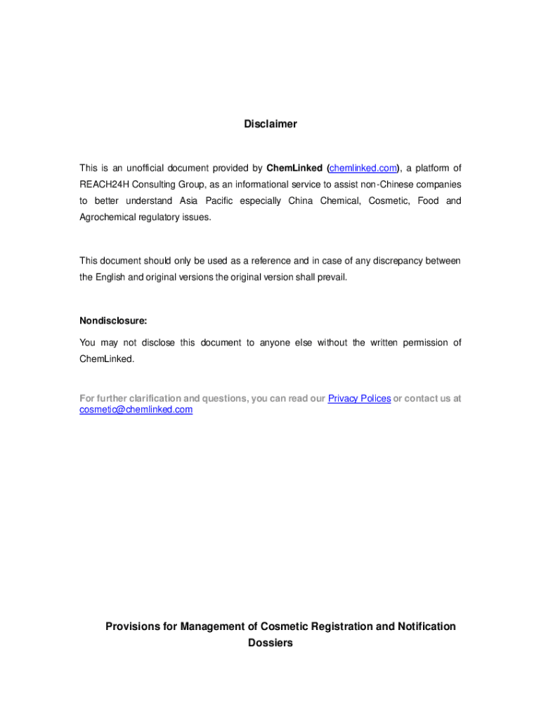 Disclaimers is an unofficial document provided by Hemline (chemlinked.com), a platform of