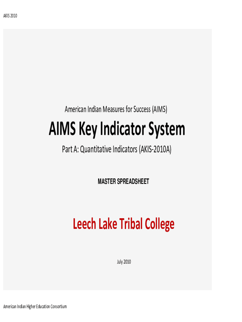 AXIS 2010American Indian Measures for Success (AIMS)AIMS Key Indicator System Part A: Quantitative Indicators (AKIS2010A) MASTER SPREADSHEETLeech Lake Tribal College July 2010American Indian Higher
