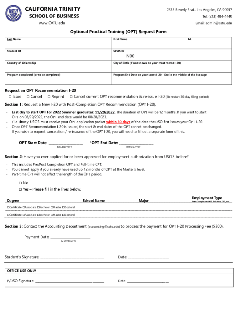 Get the free Post-Completion Optional Practical Training (OPT) Online ...