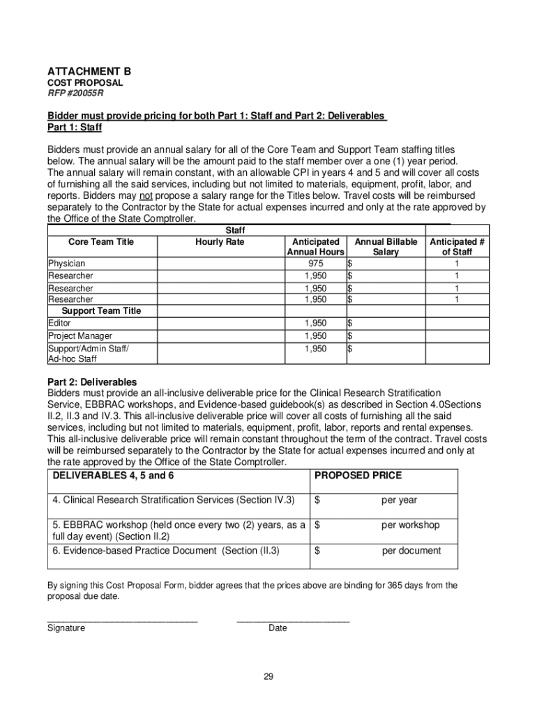 ATTACHMENT B COST PROPOSAL RFP #20055RBidder must provide pricing for both Part 1: Staff and Part 2: Deliverables Part 1: Staff Bidders must provide an annual salary for all the Core Team and Support