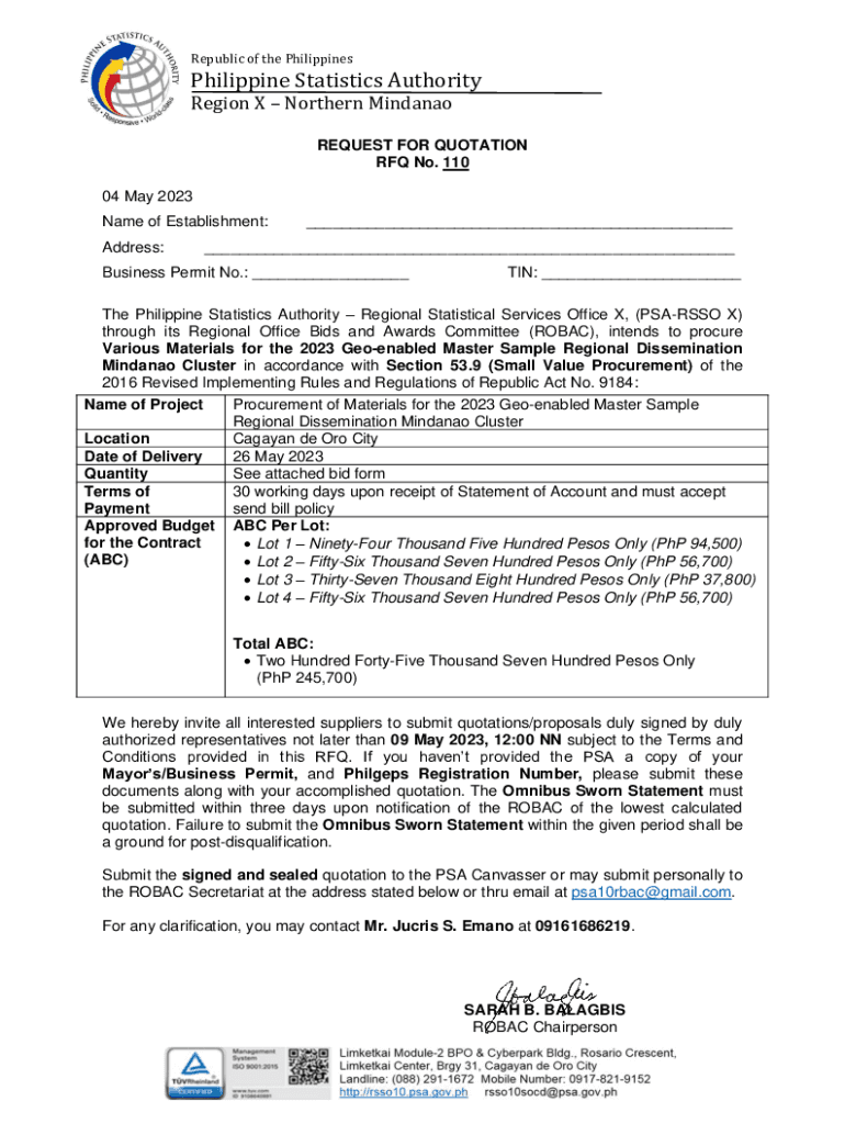 Region X Northern MindanaoREQUEST FOR QUOTATION