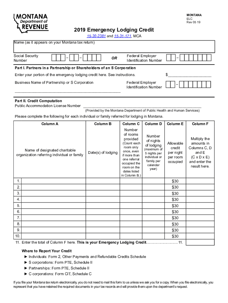 Get the free Emergency Lodging Credit (Form ELC)