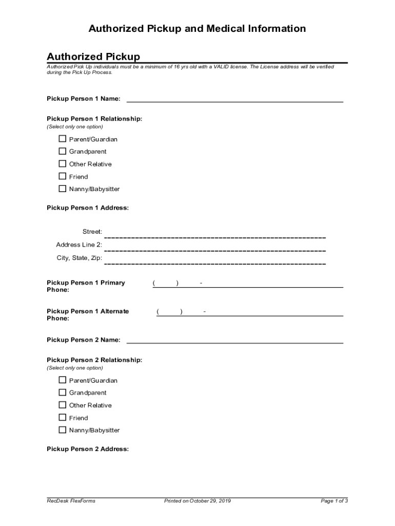 Get the free Authorized Pickup and Medical Information. Created with RecDesk FlexForms