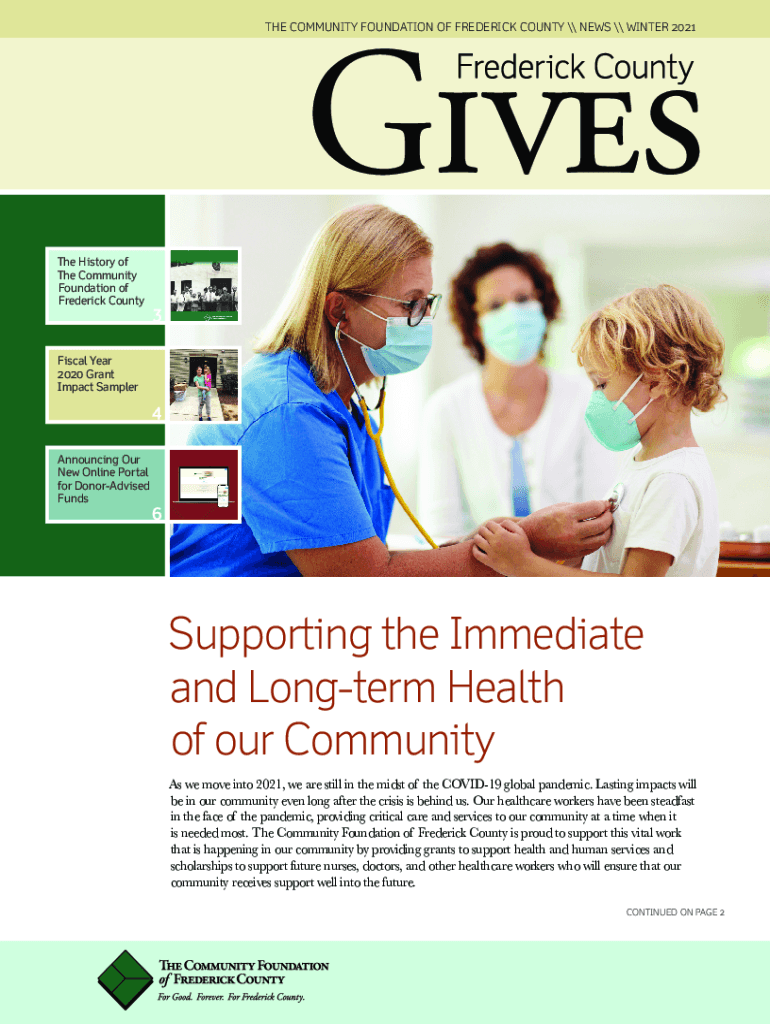 THE COMMUNITY FOUNDATION OF FREDERICK COUNTY NEWS WINTER 2021The History of The Community Foundation of Frederick County3Fiscal Year 2020 Grant Impact Sampler4 Announcing Our New Online Portal for