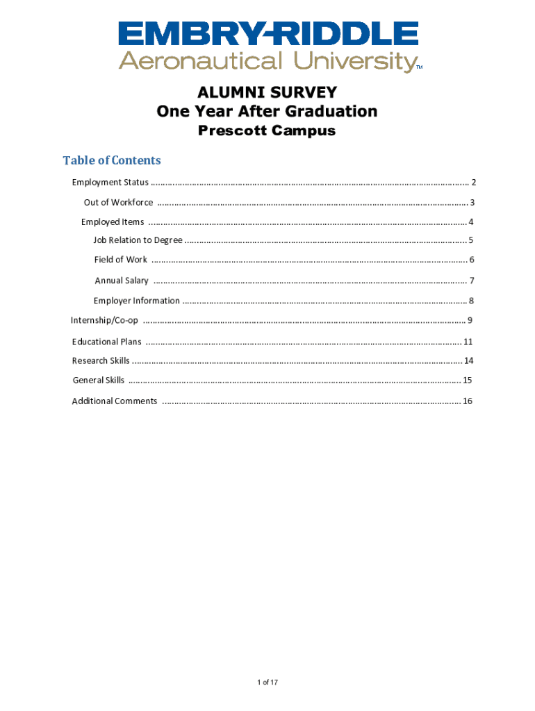 Prescott Campus Table of Contents Employment Status .................................................................................................................................... 2 Out of Workforce