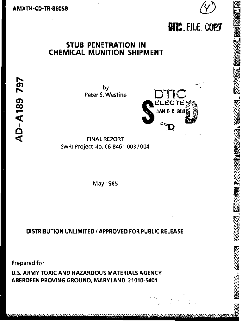 Get the free Stub Penetration in Chemical Munition Shipment. The M55 warhead carries a chemical a...