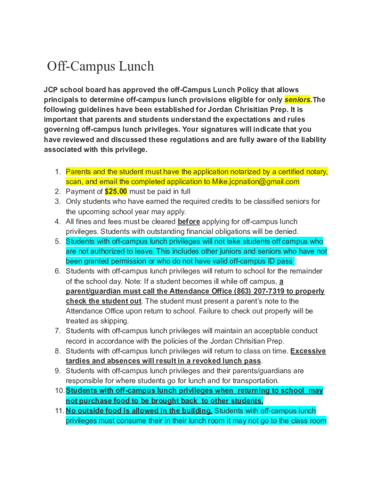 principals to determine off campus lunch provisions eligible for only seniors. The