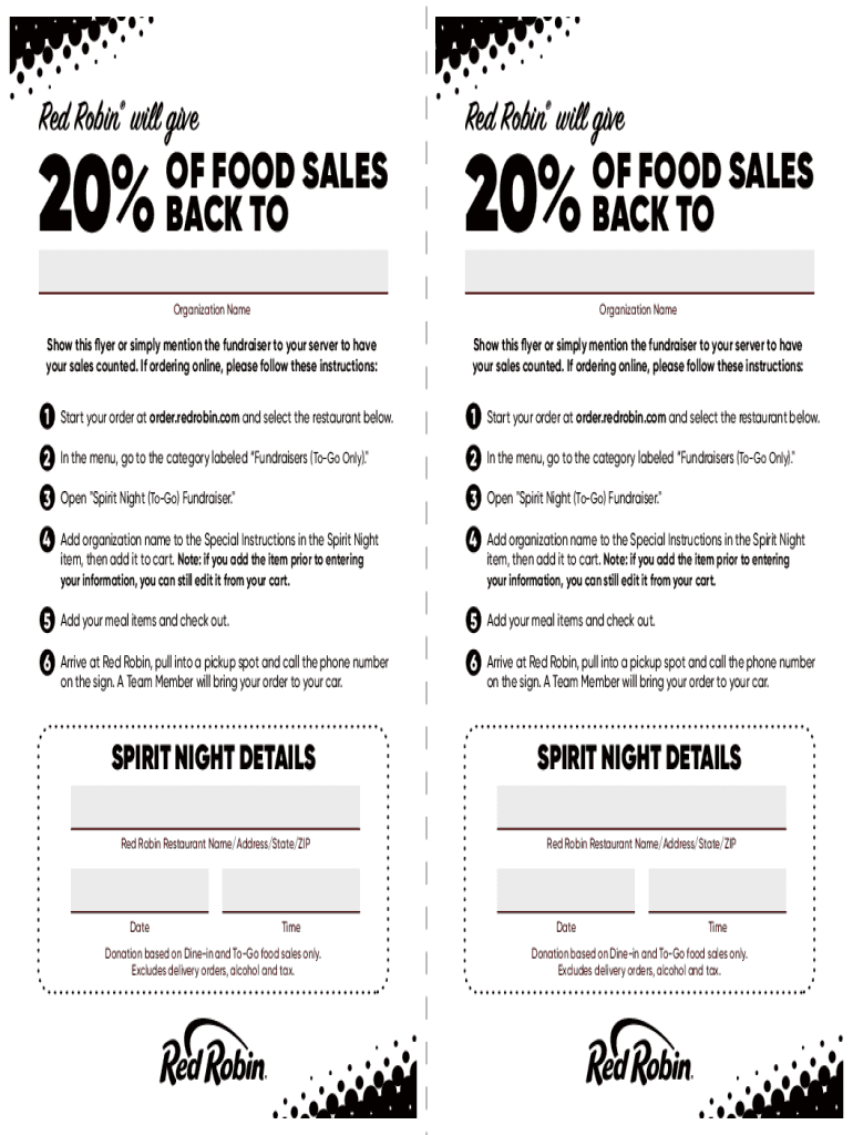 Contact the school or organization hosting the spirit night fundraiser to request a form.