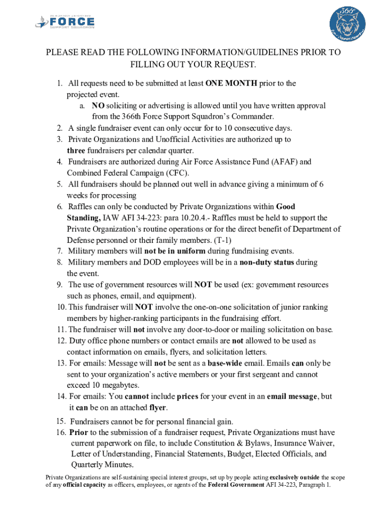 1PLEASE READ THE FOLLOWING INFORMATION/GUIDELINES PRIOR TO FILLING OUT YOUR REQUEST. 1. All requests need to be submitted at least ONE MONTH prior to the projected event. a. NO soliciting or advertising
