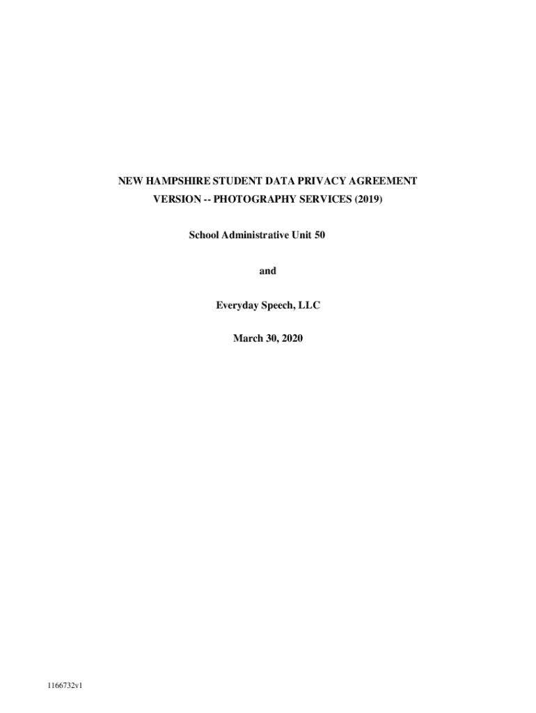 NEW HAMPSHIRE STUDENT DATA PRIVACY AGREEMENT VERSION PHOTOGRAPHY SERVICES (2019) School Administrative Unit 50 and Everyday Speech, LLC March 30, 20201166732v1This New Hampshire Student Data Privacy