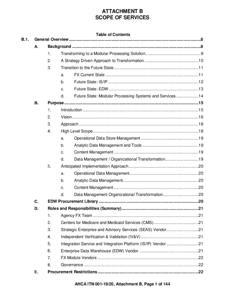 ATTACHMENT B SCOPE OF SERVICES.1. Table of Contents General Overview ...................................................................................................................8 Background