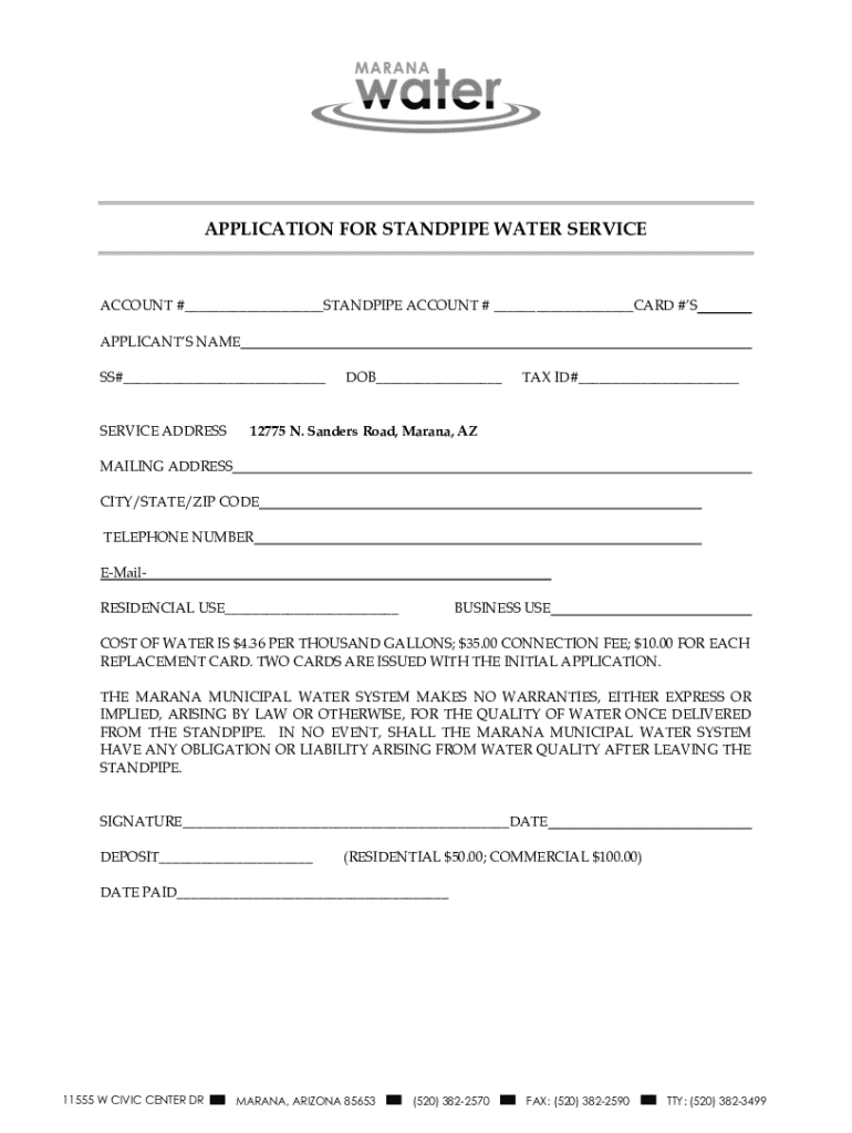 Standpipe Application Form is not the form you're looking for?Search for another form here.