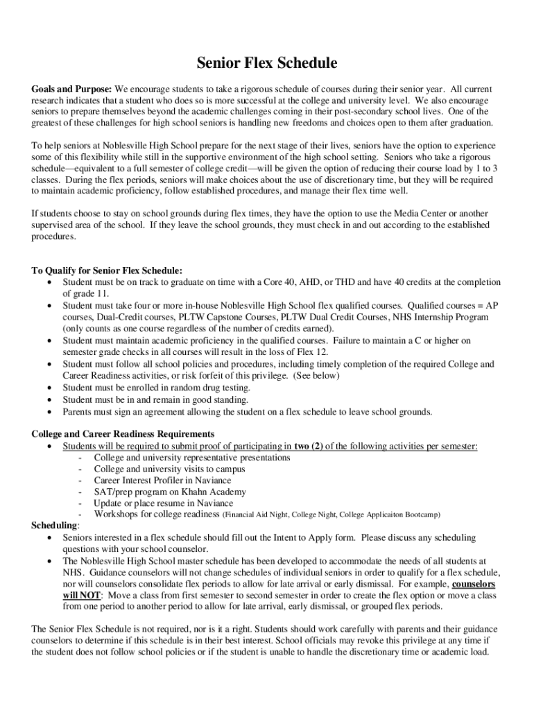 Senior Flex Schedule Goals and Purpose: We encourage students to take a rigorous schedule of courses during their senior year. All current research indicates that a student who does so is more successful