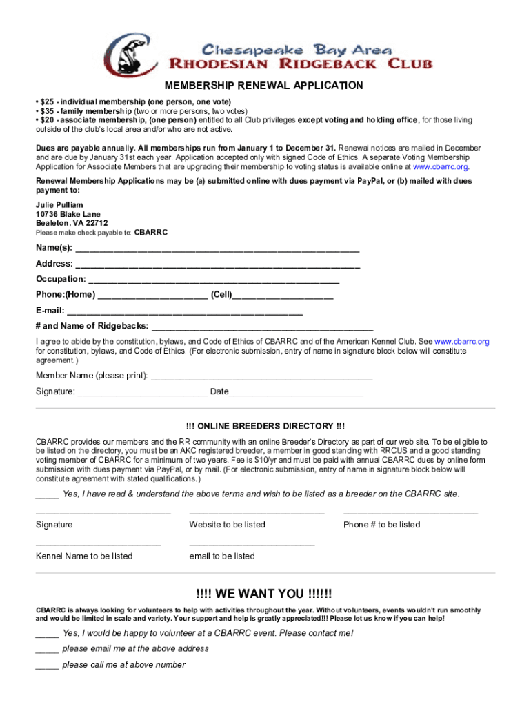 MEMBERSHIP RENEWAL APPLICATION $25 individual membership (one person, one vote) $35 family membership (two or more persons, two votes) $20 associate membership, (one person) entitled to all Club privileges