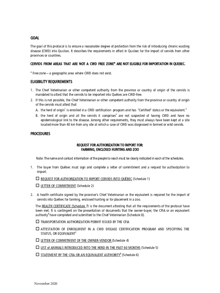 PROTOCOL REGARDING IMPORT INTO QUEBEC OF CORVIDS