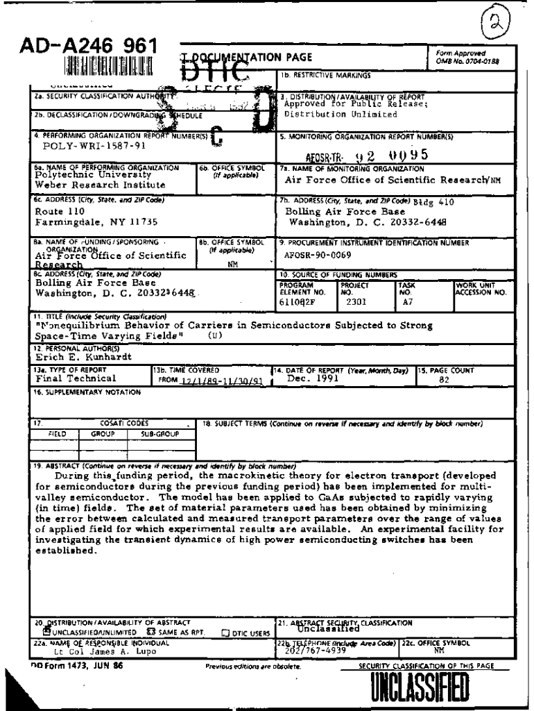 ADA246n,ACTION 961T NUI 2a. SECURITY CLASSIFICATION Author,2b. DECLASSIFICATION/DOWNGRADI1\” I KR.,&3. DISTRIBUTION/AVAILABILITY OF REPORT;approved for Public Release; Distribution UnlimitedEDULE4.