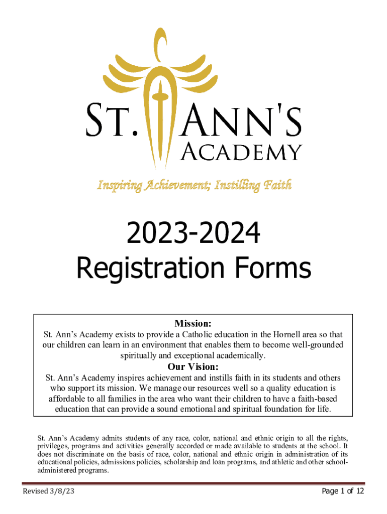 Inspiring Achievement; Instilling Faith20232024 Registration Forms Mission:St. Ann's Academy exists to provide a Catholic education in the Cornell area so that our children can learn in an environment