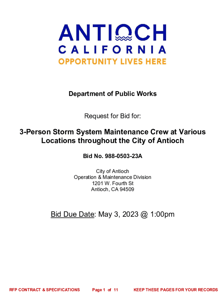 Department of Public Works Request for Bid for:3Person Storm System Maintenance Crew at Various Locations throughout the City of Antioch Bid No. 988050323A City of Antioch Operation & Maintenance